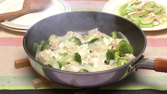 ブロッコリーとチキンボールのチーズ蒸し kyou 14時間前 材料 (2人分) ブロッコリー(小)1個(250g) 鶏ひき肉(もも)200g 塩、おろしにんにく各小さじ1/3 パン粉大さじ4 玉ねぎ1/2個(100g) 塩小さじ1/4 ピザ用チーズ50g 作り方 ポイント チキンボールはきれいに丸めなくてOK!小さめの一口大にちぎって並べ入れましょう 仕上げにピザ用チーズを散らし、とろりと溶けたチーズをからめながら召し上がれ! ブロッコリーの茎は、繊維を断つように横薄切りにしてゆでれば、皮をむかなくても食べられます