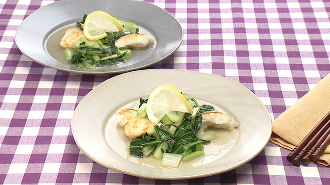たらソテー 小松菜エスニック炒め添え kyou 2か月前 材料 (2人分) 生だら2切れ(200g) (塩小さじ1/4 小麦粉大さじ1) 小松菜1わ(200g) ナンプラー小さじ2 酒、レモン汁各大さじ1 砂糖小さじ1 こしょう少々 レモンの輪切り2枚 ●オリーブ油、バター 作り方 ポイント たらは塩をふってから冷蔵庫に10分ほどおき、出てきた水気をふいて臭みを除きましょう たらは皮目から脂が出てくるので、皮目を下にして焼き始めるのがポイント レモンの輪切りに切れ目を入れ、開くようにしてレモンを自立させると見栄えがよくなり、おすすめです