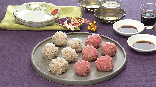 もち米シューマイ kyou 1日前 材料 (20個分) もち米1合 食紅ごく少々 豚ひき肉400g 玉ねぎ1/4個(50g) 生椎茸2枚(40g) おろししょうが1かけ分 片栗粉大さじ2 しょうゆ、オイスターソース、酒各大さじ1 砂糖、ごま油各小さじ1 塩小さじ1/3 作り方 ポイント 食紅は耳かき1杯程度のごく少量でOKです。入れすぎないように注意しましょう 肉だねは、粘りが出るまでしっかりと練り混ぜるのがポイントです 蒸し上がったシューマイを冷凍保存することもできます。食べるときはレンジで温めてください