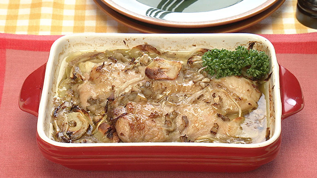 - 鶏もも肉は両面にフォークを刺して穴をあけると、焼き縮みを防ぎ、下味の入りもよくなります