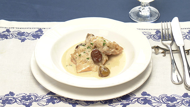 - “白い煮込み”と呼ばれるフランス料理です。食材の焼き色が濃くならないように注意しましょう