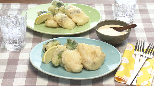 - フリットの衣に冷えたビールを加えることで、ふわふわ、サクサクの食感に仕上がります