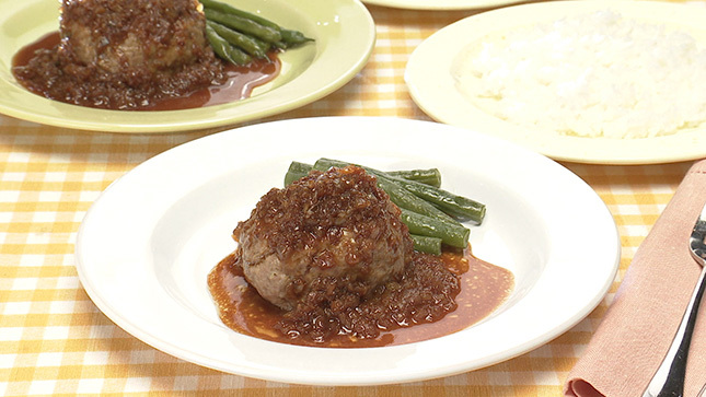 蒸しハンバーグ シャリアピンソース kyou 12時間前 材料 (2人分) 合びき肉200g 玉ねぎ1個(200g) パン粉1/3カップ 牛乳1/3カップ 塩小さじ1/3 こしょう少々 赤ワイン大さじ2 しょうゆ、みりん各大さじ1 酢小さじ1 おろしにんにく小さじ1/4 さやいんげん8~10本(80g) ●バター 作り方 ポイント 肉だねのつなぎに卵を使わないことで、やわらかく仕上がります 肉だねは粘りが出るまでしっかりと練り混ぜるのがポイント!崩れにくくなります ソースに少量の酢を加えることで味がしまります。ヘラで線がかける程度まで煮つめましょう
