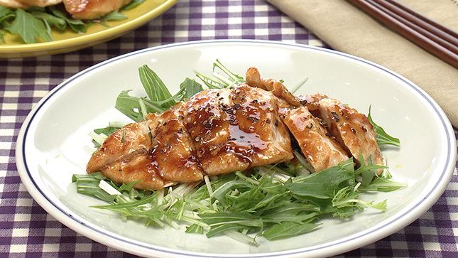 鶏胸のバターレモン照り焼き kyou 12時間前 材料 (2人分) 鶏胸肉1枚(300~330g) (塩、こしょう各少々 片栗粉大さじ1) みりん大さじ2 しょうゆ、レモン汁各大さじ1 おろしにんにく小さじ1/2 水菜1/4わ(60g) ●油、バター 作り方 ポイント バターが溶けてできる泡で火を通すように焼くと、鶏胸肉がふんわりと焼き上がります 鶏胸肉は全体にフォークをしっかりと刺して穴を開けると、味がなじみやすく、やわらかくなります レモンの酸味とにんにくの香りを効かせることで、パンにもごはんにも合うおかずになります